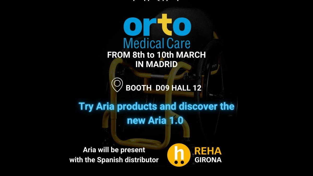 In particular, we at Aria will be participating in the fair together with our Spanish distributor Rehagirona, at stand D09 in pavilion 12, offering visitors the opportunity to get up close and personal with our products and to test them directly at the fair. Our range of super-lightweight wheelchairs has been designed to offer greater freedom of movement and comfort to users, thanks to their lightness, ease of use, and innovative design. Our experts and those of Reha Girona will be available to provide information and assistance to interested visitors.
