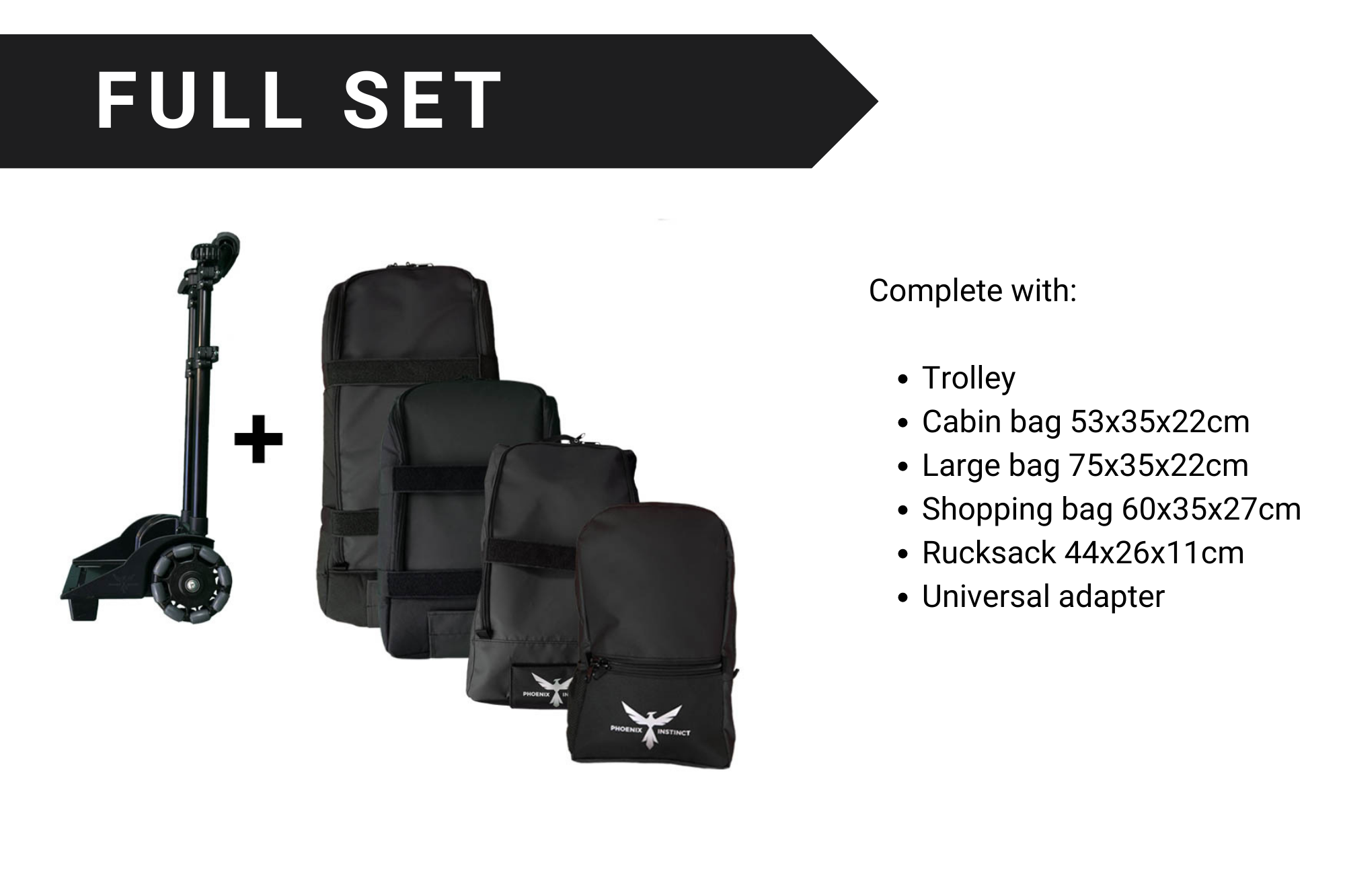 Furthermore, Phoenix System bags come with a detachable trolley that can be used with any size of System bag, whether it's a cabin bag, large bag, XL bag, or shopping bag. The trolley can also be used independently to carry various awkward objects. During travel, the System trolley remains connected to the bag at all times, ensuring convenience and ease of use.