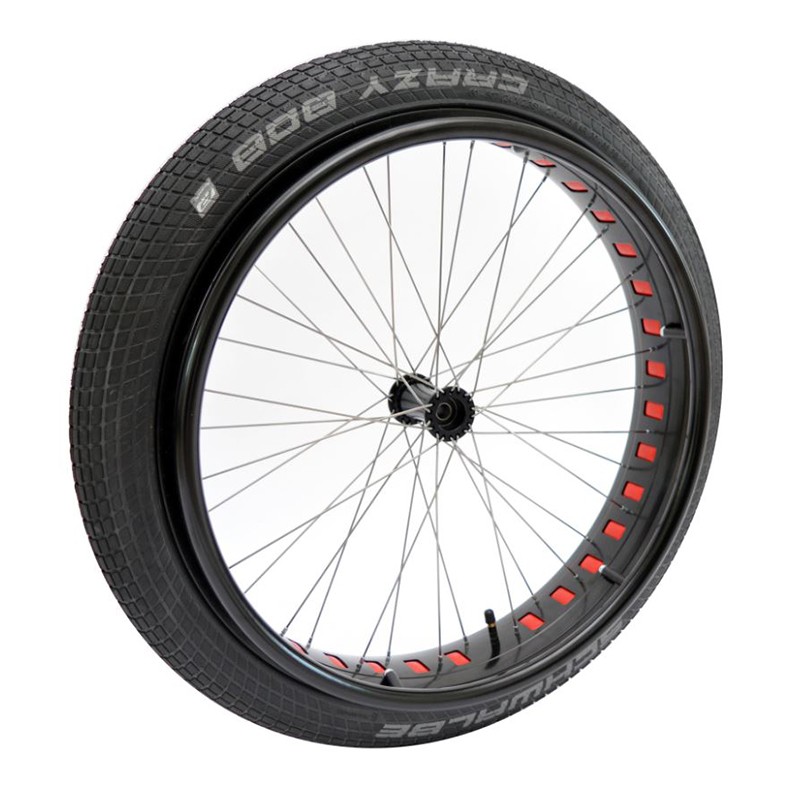 The Kit is complete with Fat Crazy rims, Bob Schwalbe 24x235 tyres, black anodised handrims and quick-release pins.