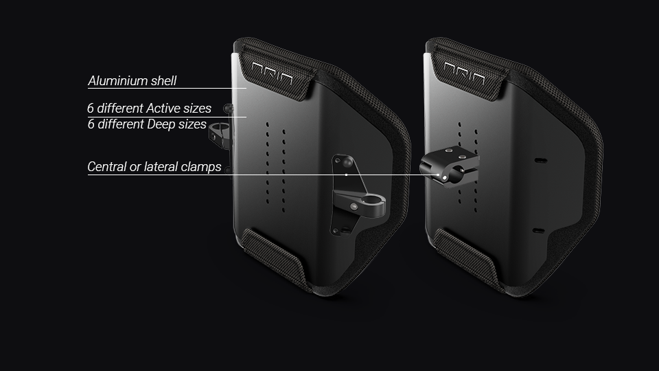 Supplied with 30 mm high-density foam padding and its cover is made of fire-retardant, breathable fabric. Can be mounted centrally, with CLACE clamp adaptable to Ø 19/22/25mm tubes, or laterally, with CLALA clamp adaptable to Ø 22/25mm tubes.