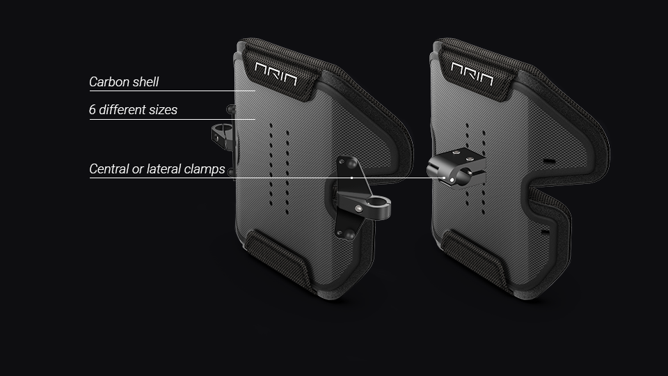 Supplied with 30 mm high-density foam padding and its cover is made of fire-retardant, breathable fabric. Can be mounted centrally, with CLACE clamp adaptable to Ø 19/22/25mm tubes, or laterally, with CLALA clamp adaptable to Ø 22/25mm tubes.